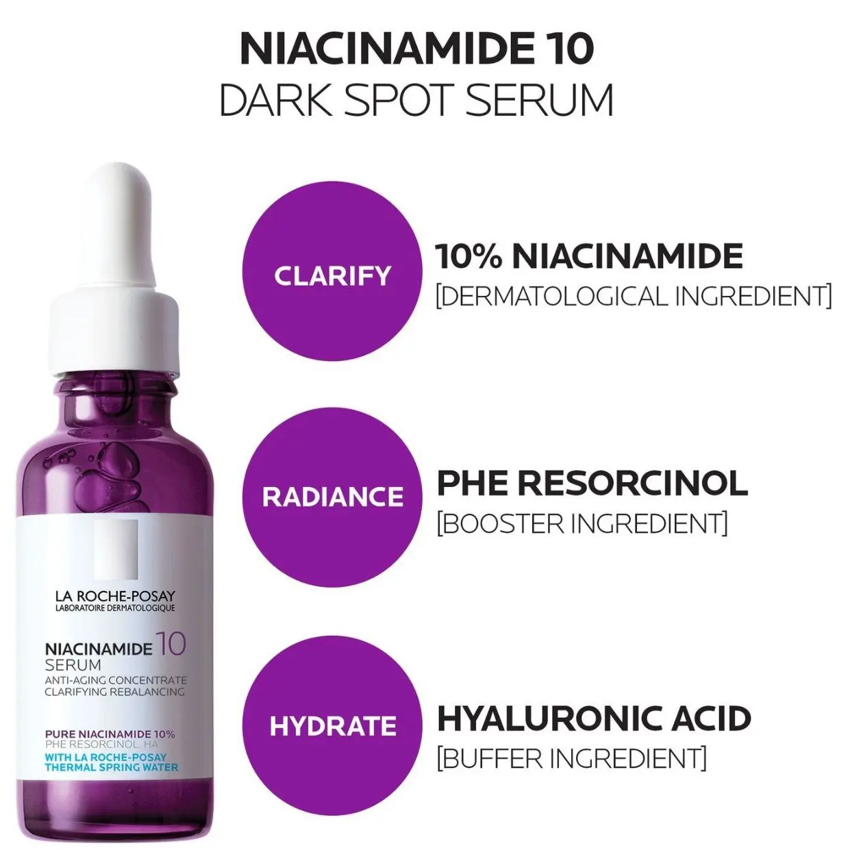 سرم ضد لک و ضدجوش نیاسینامید 10درصد لاروش پوزای باز سازی سد دفاعی پوست ضدلک قوی کنترل چربی و جوش کاهش چشمگیر منافذ باز غیرجوش زا و هیپوآلرژیک ضدپیری و جوانساز حاوی 10درصد نیاسینامید خالص ساخت کشور فرانسه دارای بارکد و بچ کد نامبر اصلی
