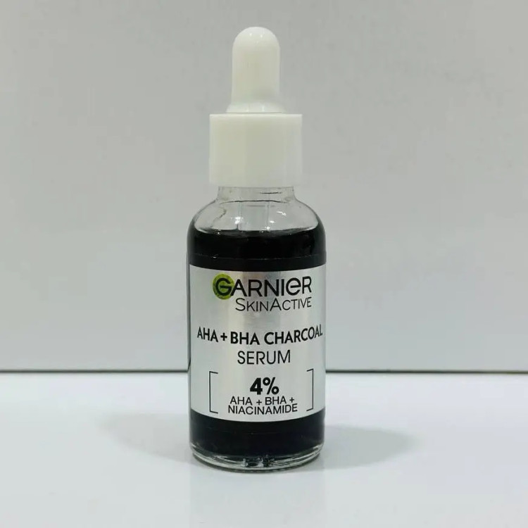 سرم زغالی ضد عیوب پوست گارنیر حاوی نیاسینامید 30 میل حاوی سالیسیلیک اسید، زغال، نیاسینامید، AHA و BHA. لایه برداری پوست یکدست کننده رنگ پوست قابلیت جذب سریع پوست کاهش جوشهای سرسیاه کاهش منافذ باز پوست کاهش 35 درصد عیوب پوست صورت افزایش شفافیت و درخشندگی پوست