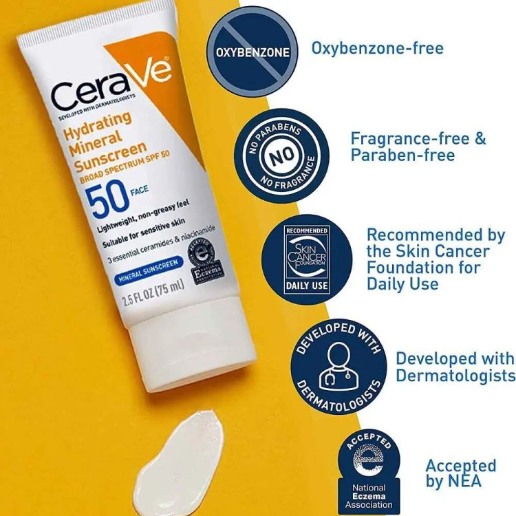 هیدراته و مرطوب کنندهی پوست محافظت از پوست با فاکتور محافظتی SPF 50 حفاظت از پوست در برابر طیف گسترده ای از امواج UVA و UVB دارای ظاهری طبیعی و بافت سبک، بدون چربی و سنگینی روی پوست دارای فیلترهای فیزیکی مسدود کننده نور خورشید قابل استفاده توسط انواع پوست (حتی پوست حساس) حاوی 3 سرامید ضروری پوست، نیاسینامید و هیالورونیک اسید ضد حساسیت غیر کومدوژنیک بدون چربی، عطر و پارابن ضدآفتاب سراوی ابرسان و هیدراته کننده