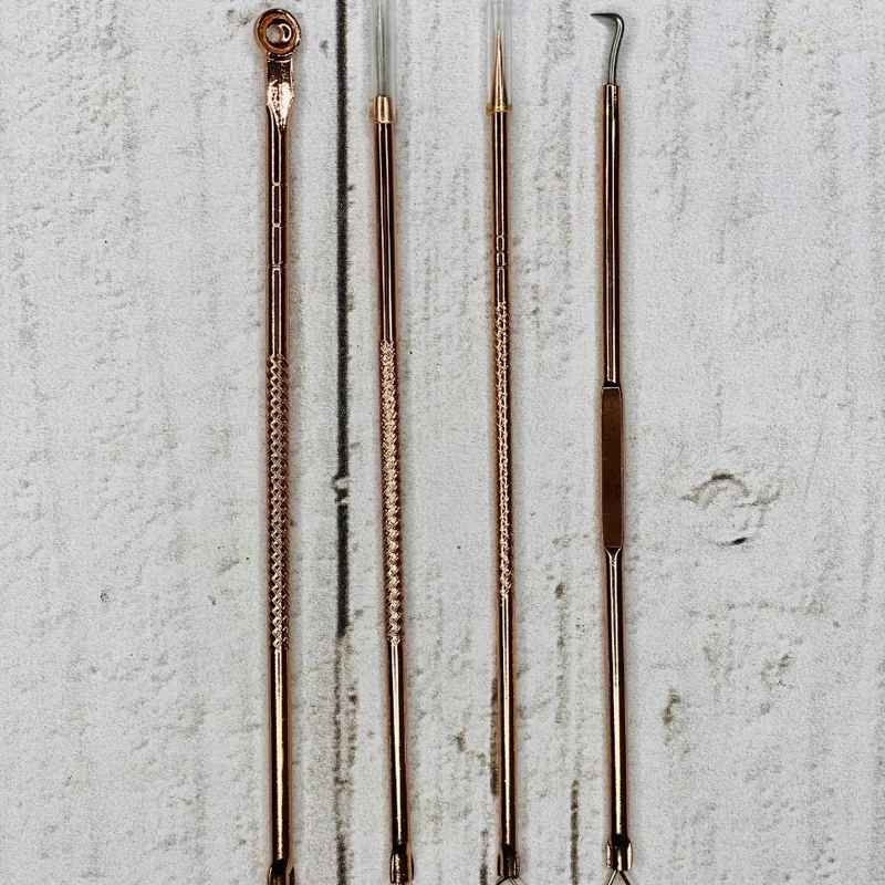 ویژگی ها و مزایا: _4 عدد میله متفاوت با کارایی های مختلف _طراحی دو سر و فوق العاده جذاب _حذف جوش، آکنه و بستن منافذ باز صورت _از بین بردن لکه های پوستی و جوش های سر سیاه وجوش های سرسفید _روشی پاک و بهداشتی برای از بین بردن لکه ها و آکنه معرفی ست تیز کومدون طلای۴تکه لانبنا: کومدون ها یک نوع جوش زیر پوستی به رنگ پوست می باشند که زیادتر در چانه و پیشانی دیده می شوند.دلیل به وجود آمدن کومدون، بسته شدن منافذ باز پوست می باشد. قلم کومدون ابزاری است که برای برداشتن جوشهای سرسیاه و سرسفید استفاده میشود. این گونه قلمها معمولا میلههای کوچک شبیه به هم و همراه با حلقههای متصل به انتها هستند و گاهی یک نوکتیز دارند. این ابزار برای خارج کردن هسته جوش بدون آسیب زدن به پوست شما طراحیشده است. ست پیلینگ میله کومدون چهار تیکه زیبایی برای شما آماده شده است شامل 4 عدد میله پیلینگ یا همان تیر کومدون می باشد که برای تخلیه کردن جوشهای صورت مخصوصا جوشهای سرسیاه ودرآوردن موهای زیرپوستی استفاده میشود. روش استفاده: قبل از استفاده توصیه میشود که صورت را بخور داده و تیر کومدون ها را با الکل ضد عفونی نمایید سپس با نوک تیز و سوزن مانند آن در روی جوش سوراخی ایجاد کنید و با سر دیگر و گرد آن جوش را به سمت پایین فشار داده تا محتویات داخل جوش بیرون بزند و پوست تمیز شود.