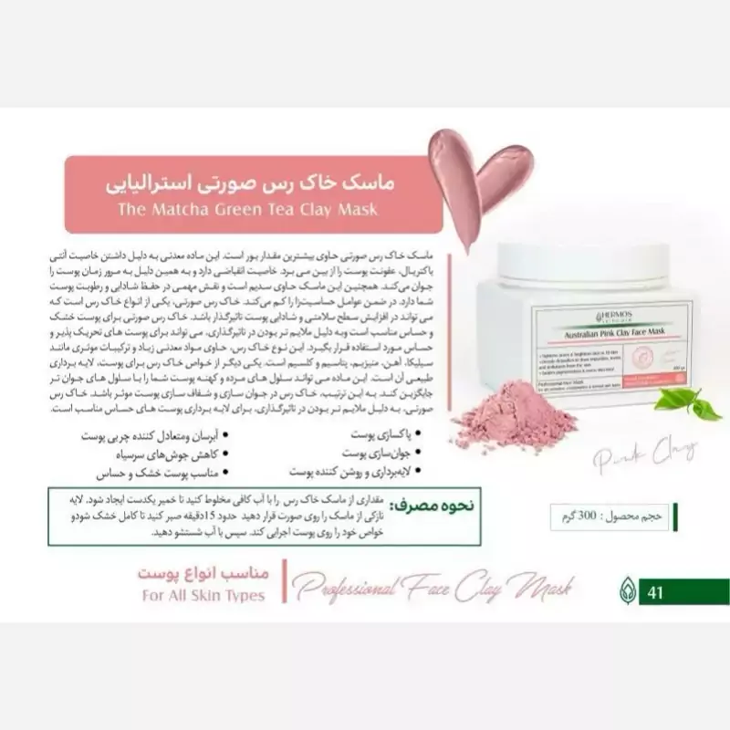 در واقع ماسک خاک رس صورتی استرالیایی هرموس موجب از بین بردن بسیاری از عیوب پوستی می گردد و برطرف کننده چین و چروک پوستی هم میباشد به عنوان شفاف کننده پوست صورت و همچنین پاک کننده عمیق منافذ باز پوست میتوان از این نمونه ماسک استفاده نمود
