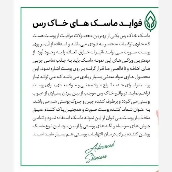 مقداری از ماسک خاک رس را با آب کافی مخلوط کنید تا خمیر یکدست ایجاد شود. لایه نازکی از ماسک را روی صورت قرار دهید حدود 15 دقیقه صبر کنید تا کامل خشک شود و خواص خود را روی پوست اجرایی کند سپس با آب شستشو دهید.
