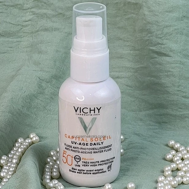 کرم ضد آفتاب ویشی مدل Capital Soleil یک ضدآفتاب با spf50+ است که یک محافظت بسیار بالا از پوست بهعمل میآورد. این کرم سبک مانند یک لایه مراقبتی قوی روی صورت قرار میگیرد. بههمین دلیل علائم پیری مانند چینوچروک و لکههای تیره ناشی از نور خورشید را اصلاح میکند. ضد آفتاب vichy برای این عملکرد خود از ترکیبات و فناوری نوآورانه Netlock کمک میگیرد.