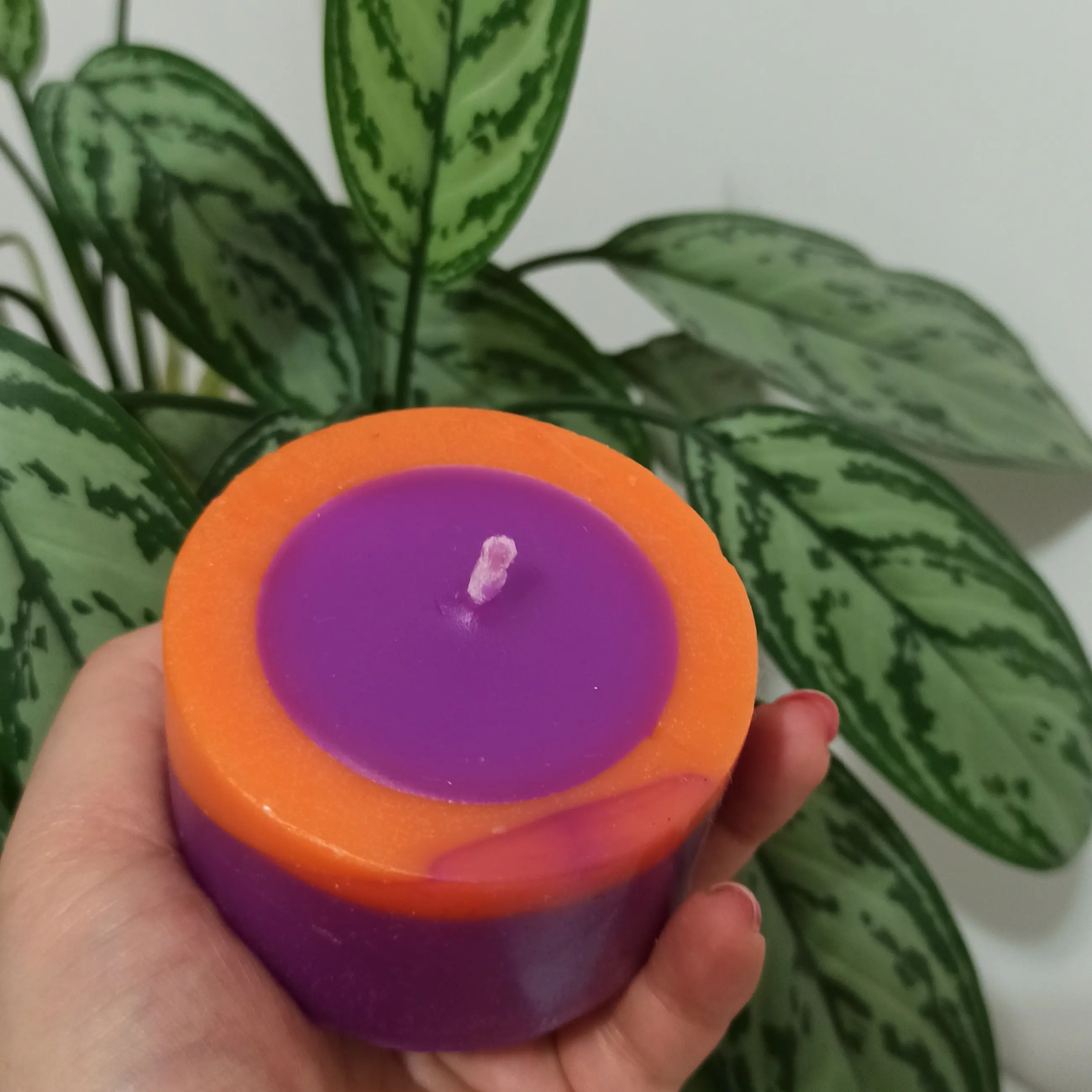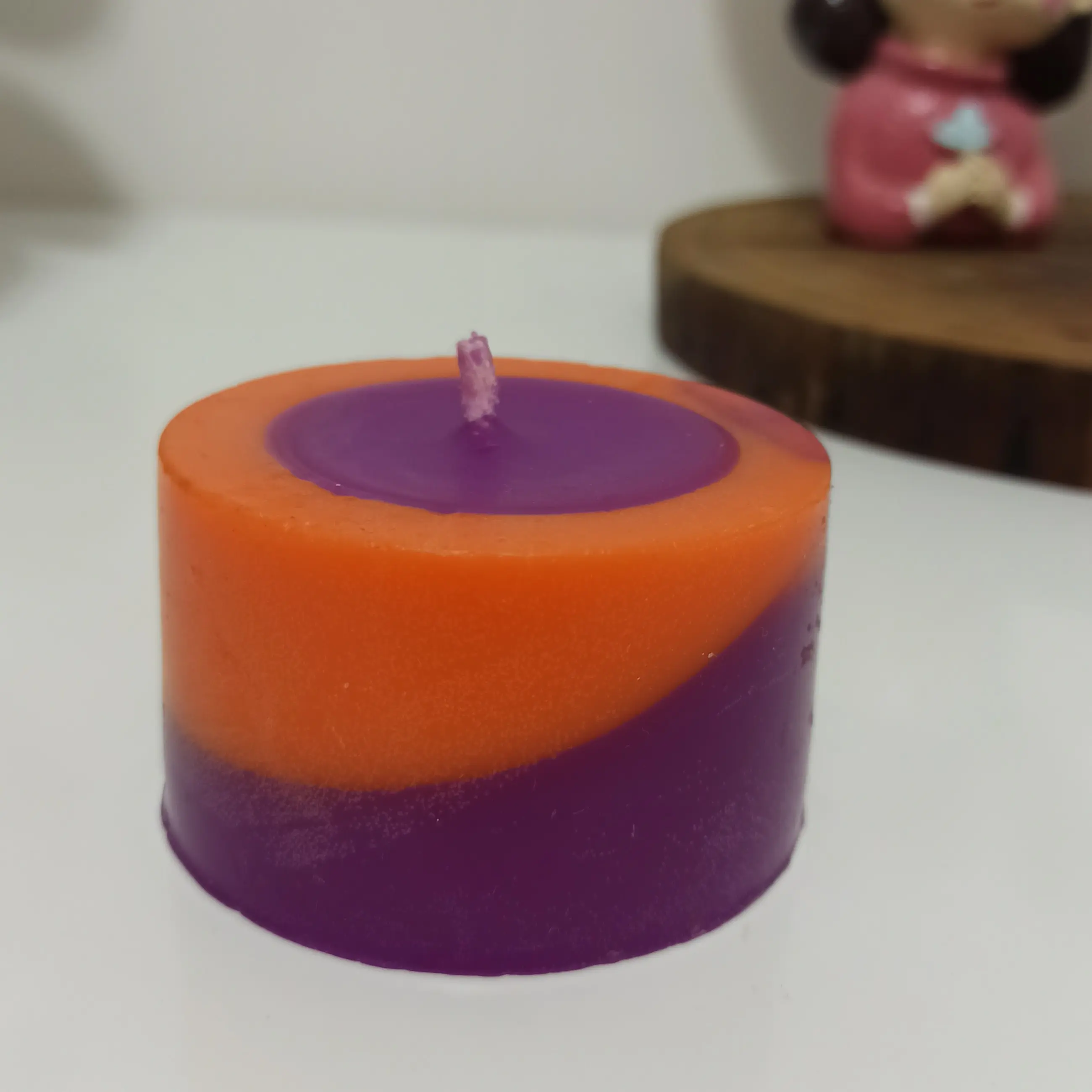 قطر ۵ سانتی متر ارتفاع ۵ سانتی متر تا انتها فیتیله دارد و قابل سوخت است با بهترین مواد رنگ به دلخواه شما قابل تغییر است معطر