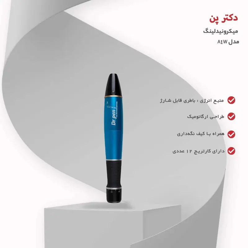 منبع انرژی باتری قابل شارژ اقلام همراه شارژر، کابل USB، دو عدد کارتریج ۱۲تایی، کاور دستگاه، ظرف نگهداری تعداد سری یک عدد قابلیتهای ابزار طراحی ارگونومیک تجهیزات همراه کیف نگهداری امکانات ابزار متمرکز کننده سایر توضیحات قابلیت کار با برق و باتری قابل شارژ داخل دستگاه درمان استرچ مارک درمان ترک های چاقی و حاملگی درمان جای زخم های بعد از جراحی درمان جای سوختگیهای شدید کمک به انتقال مواد مزوتراپی پی آر پی کمک به جذب ویتامین ها ترمیم لب شکری ترمیم منافذ باز و حالت پوست پرتغالی پوست از بین بردن خطهای اخم و چینوچروکها درمان جای جوش درمان همیشگی هایپرپیگمنتیشن و یا چند رنگ شدن پوست درمان لکه های پیری و آفتاب سوختگی بهبود فوقالعاده استرچ مارکها بهبود سوختوساز سلولی کلاژن و الاستینسازی